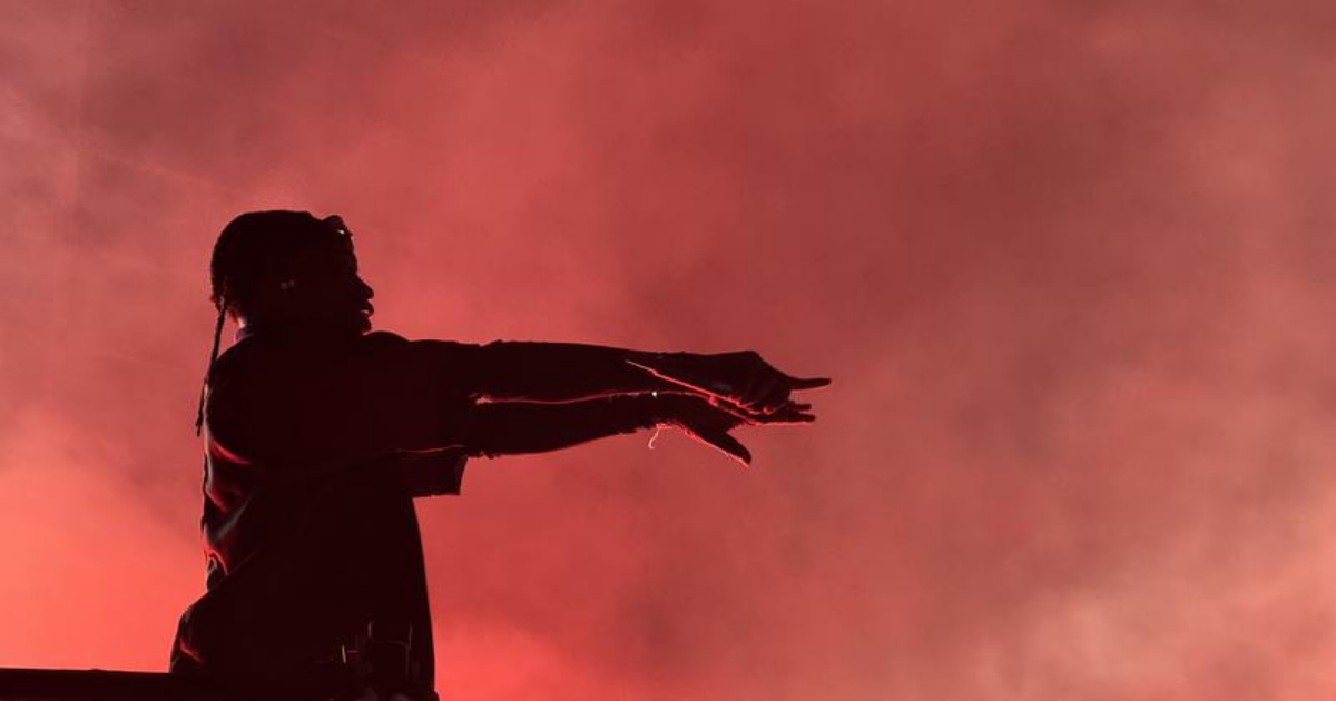 Scott took to the stage wearing the jersey and ensured no one stood still as he played his signature blend of atmospheric sounds, beats, and autotuned vocals and hits such as ‘FE!N’ and ‘Butterfly Effect’. With a futuristic, dark, and theatrical aesthetic, he performed on a stage resembling a football field complete with a goalpost and flares.