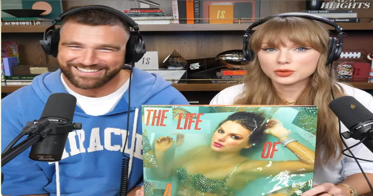 Taylor Swift and Travis Kelce talk about her new album, “The Life of a Showgirl,” on the “New Heights” podcast.