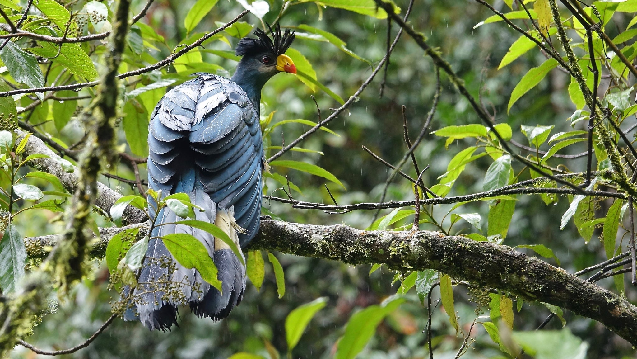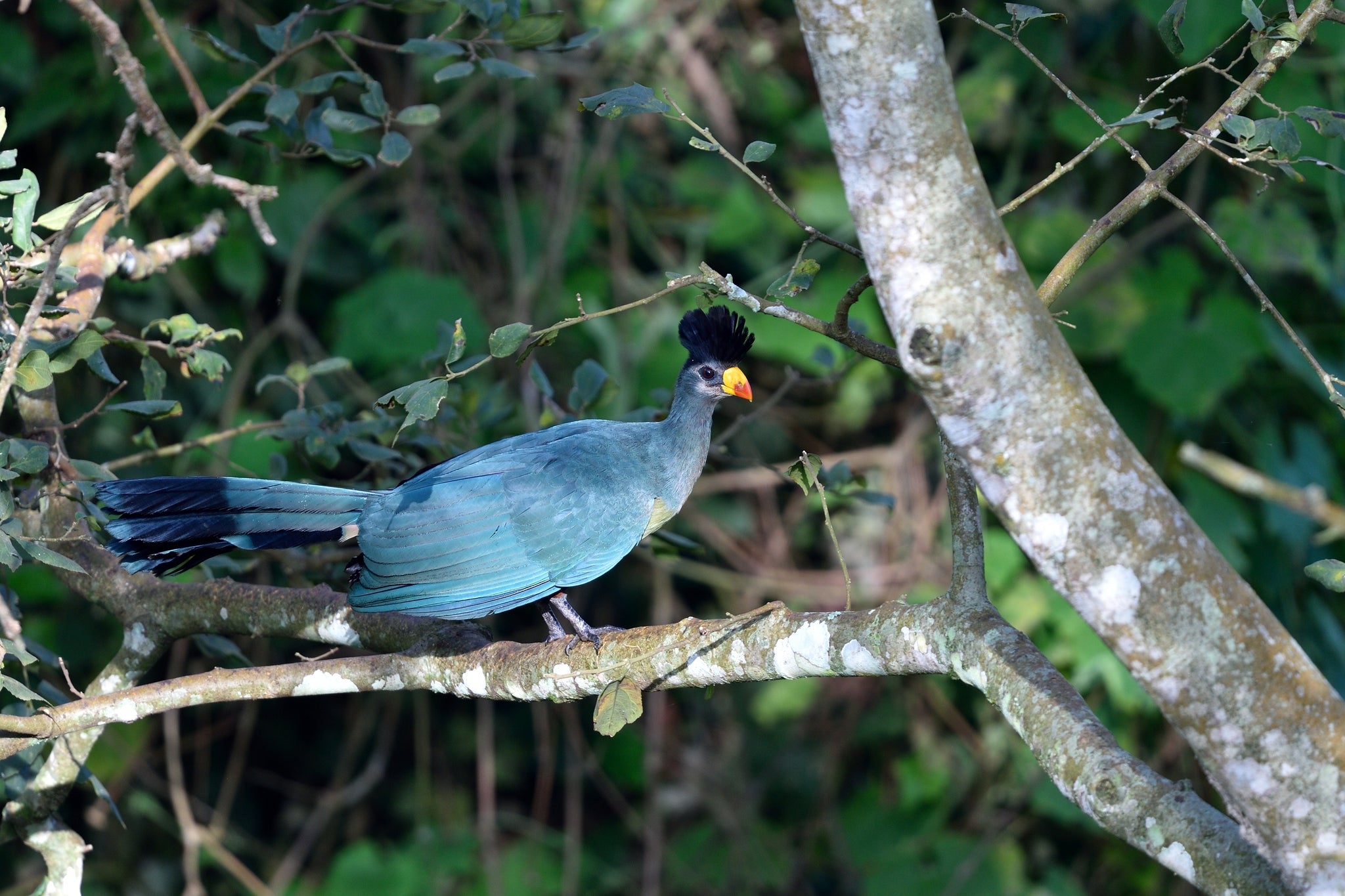 The Great Blue Turaco is the largest in the world ranging from 70-75 cm in length. The body is bright blue and the The wings of the Turaco are quite short and rounded. They have a stout body and a long tail. Both sexes are identical and their coloration doesn’t change throughout the year.