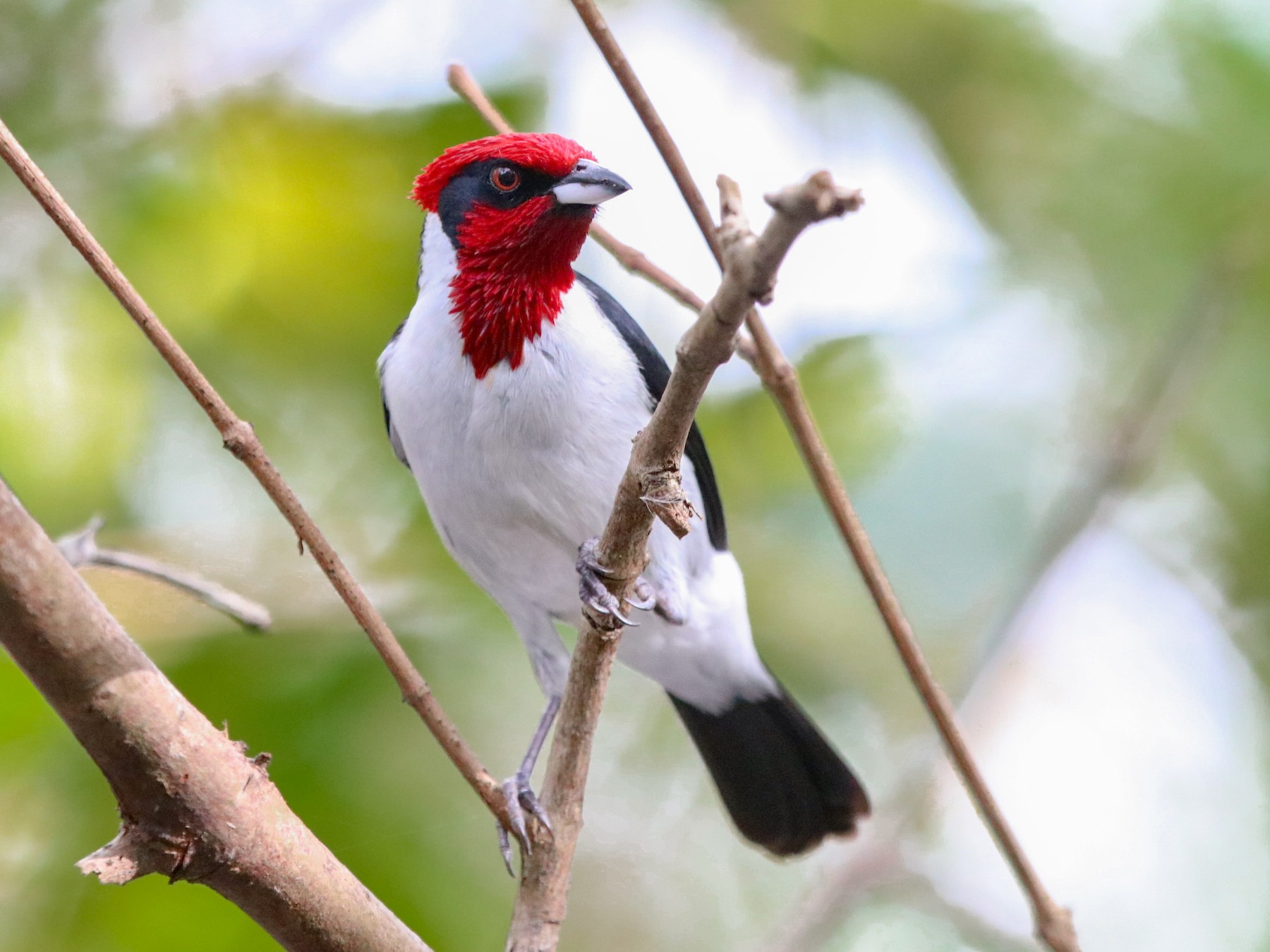 The masked cardinal, also known as the red-capped cardinal, is a member of the Cardinalidae family, which includes birds like the northern cardinal and the rose-breasted grosbeak. Like its cousins, the masked cardinal is primarily a seed-eater, and is often found foraging on the ground for food.