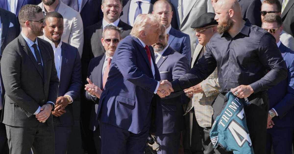 WASHINGTON (AP) — President Donald Trump feted the 2025 Super Bowl champion Philadelphia Eagles at the White House on Monday, but several players, including quarterback Jalen Hurts, decided to skip the celebration.