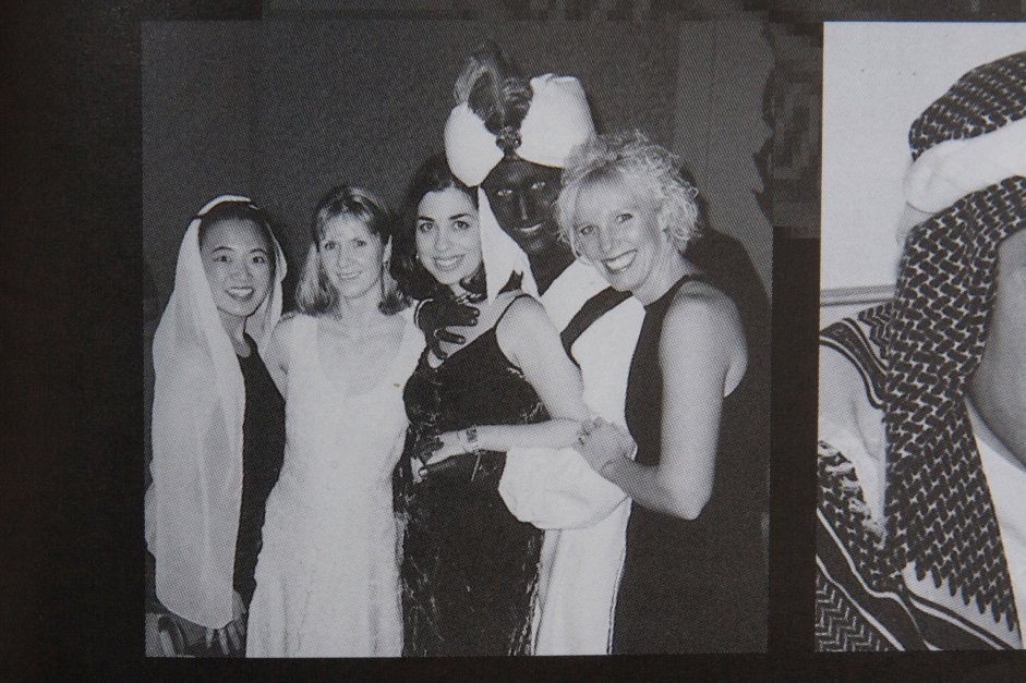 Justin Trudeau appears with makeup on his face and hands at an Arabian Nights-themed party in 2001. (Supplied: Time)