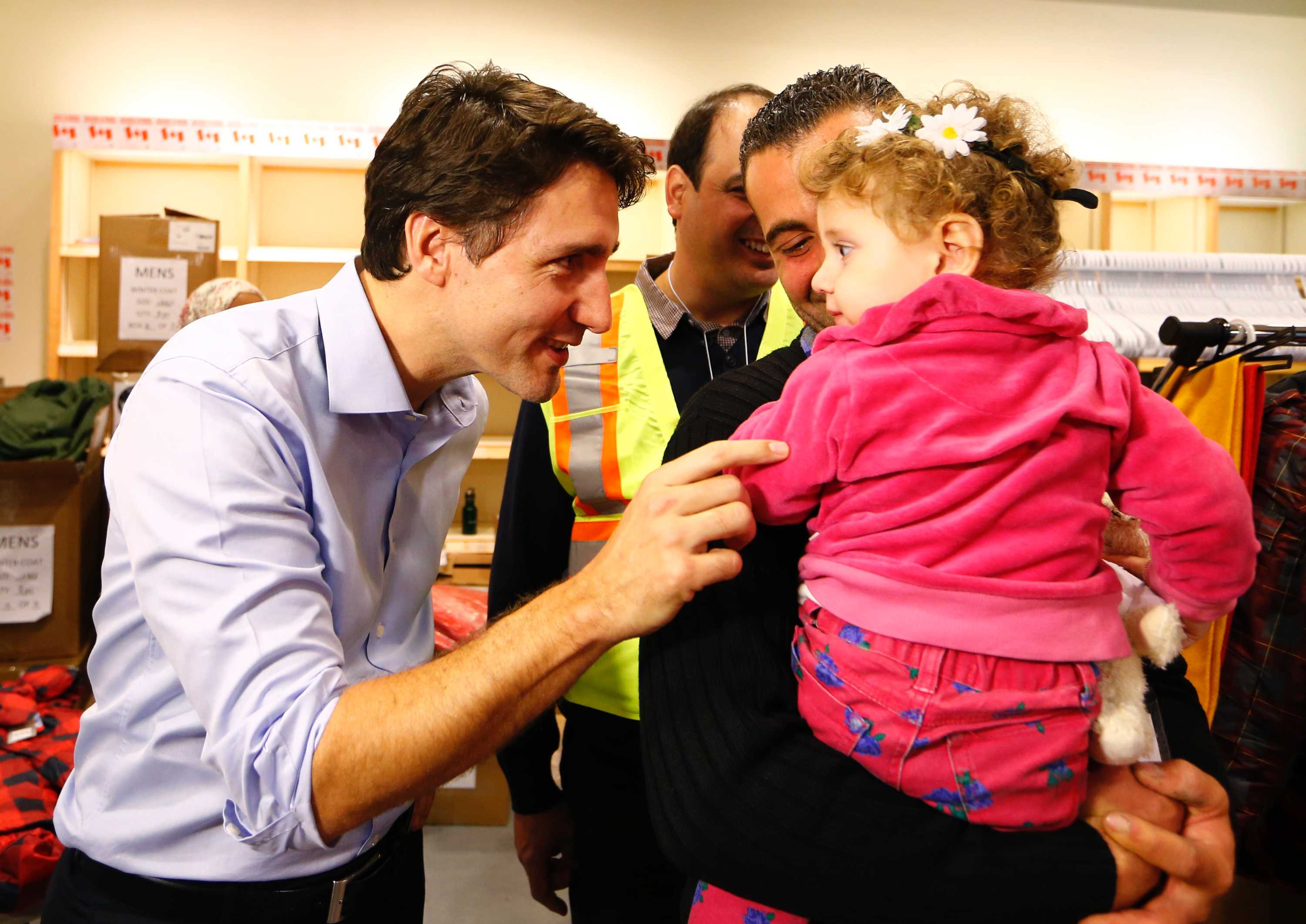 Justin Trudeau greets Syrian refugees back in 2015. (Reuters: Mark Blinch)